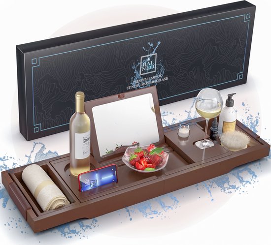 Een houten badplank, ook wel bekend als een badbrug, is een plank die over je bad wordt geplaatst, waardoor je een handig oppervlak hebt om verschillende items op te plaatsen terwijl je in bad ligt. Het is meestal gemaakt van hoogwaardig hout en kan worden aangepast aan de breedte van je bad. Een houten badplank is voorzien van uitsparingen en sleuven waar je je boek, glas wijn, smartphone of andere badaccessoires in kunt plaatsen.