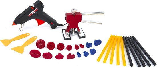 Een deukentrekker is een gereedschap dat wordt gebruikt om deuken uit auto’s te trekken zonder schade aan de originele laklaag te veroorzaken. Het bestaat uit verschillende componenten, waaronder een trekhaak, lijm, een brug en speciale uitdeukpluggen. Door deze componenten op de juiste manier te gebruiken, kunnen professionele deukentrekkers deuken effectief verwijderen en de auto herstellen naar zijn oorspronkelijke staat.