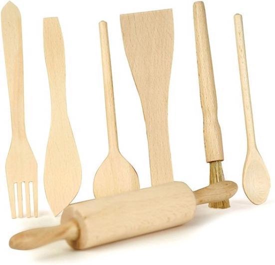 Een set van houten potten, pannen en keukengerei is een essentiële toevoeging aan elke speelgoedkeuken. Je kind kan ze gebruiken om ingrediënten te mixen, gerechten te bereiden en zijn of haar kookvaardigheden te ontwikkelen.
